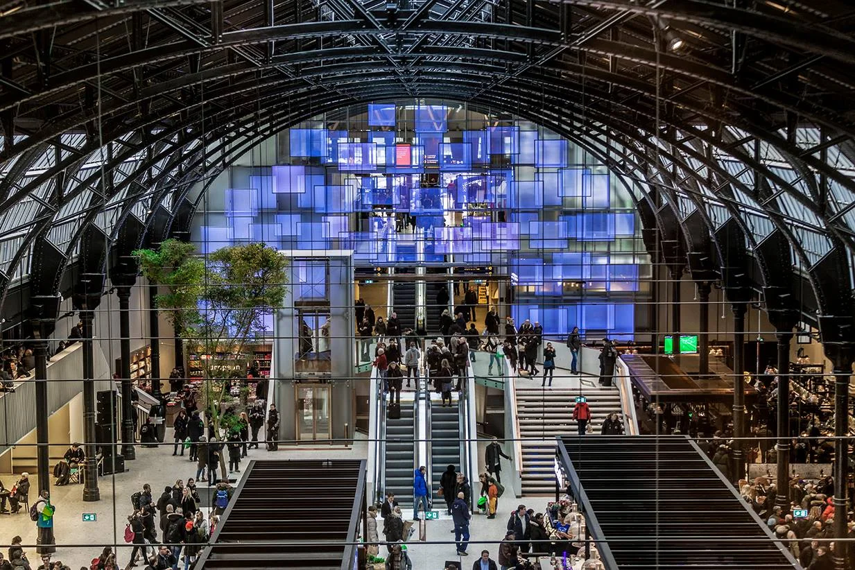 The lighting design in Østbanehallen is well integrated in the architecture with powerful scenographic features emphasising the atmosphere of a space, which attracts thousands of travellers every day.
